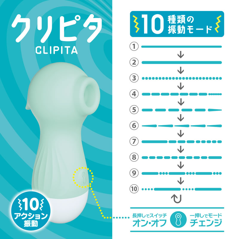 吸い付いて震えるクリピタは、シリコン素材で柔らかい触感とケーブルレスで簡単充電が特徴の吸引グッズ。