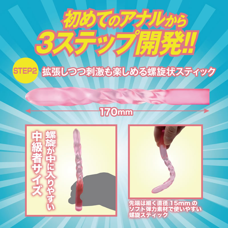 STEP2:全長170mm先端部の径13mmの拡張しつつ刺激も楽しめるらせん状スティック。