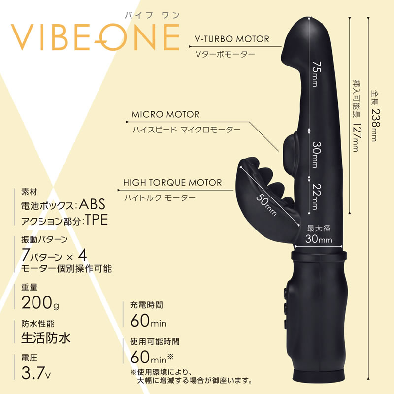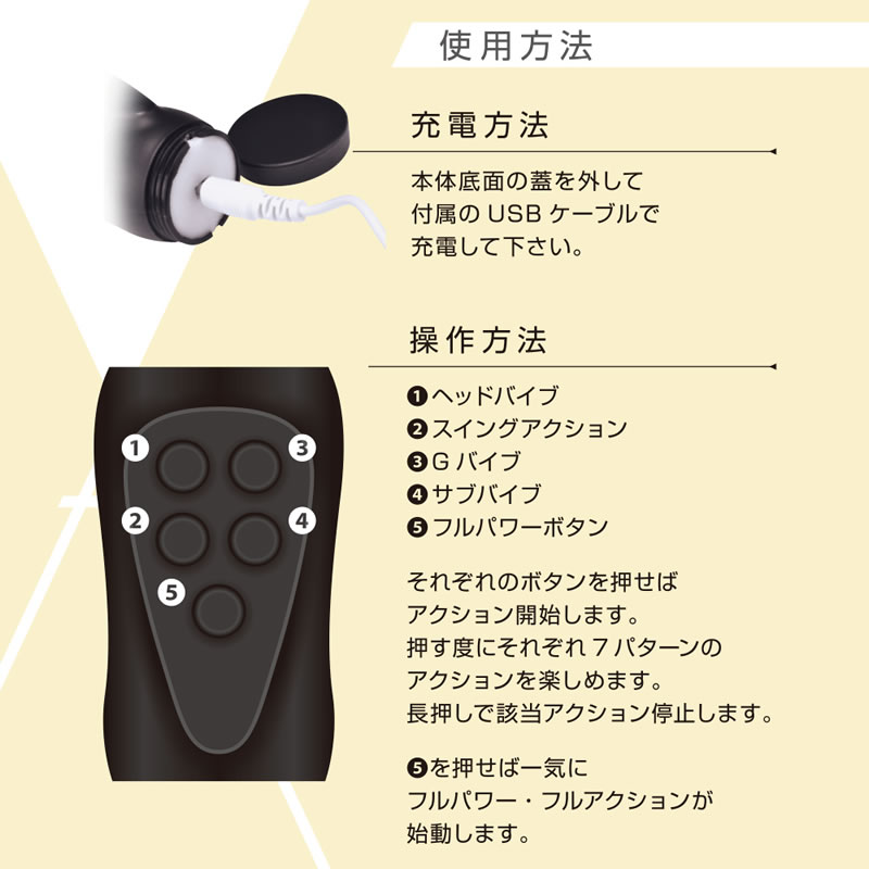 ヘッドにターボモーター、G位置にハイスピードマイクロモーター、さらにサブバイブにもハイトルクモーターを搭載した3バイブ+スイングアクションが楽しめるプレジャーグッズ。