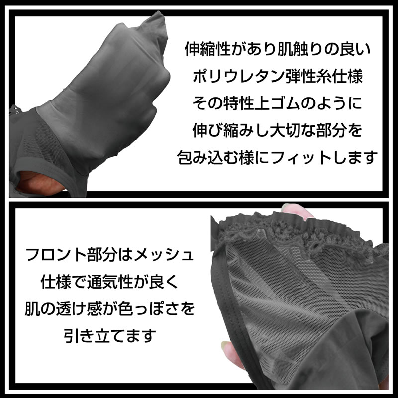 伸縮性のある触り心地抜群な素材の玉袋もカバーするポール付。優しく大切な部分を包み込みます。
