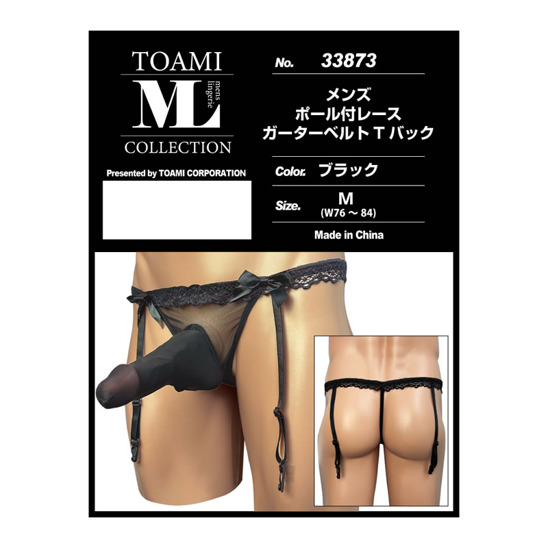 ★メンズ ポール付レースガーターベルトTバック ブラック