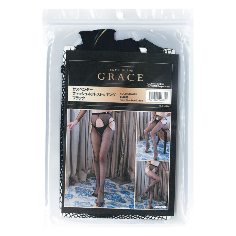 ★グレース サスペンダーフィッシュネットストッキング ブラック