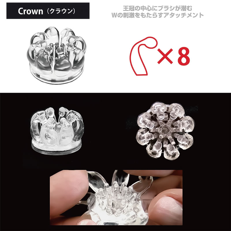 王冠の中心にブラシが潜む、ダブル刺激のアタッチメント。