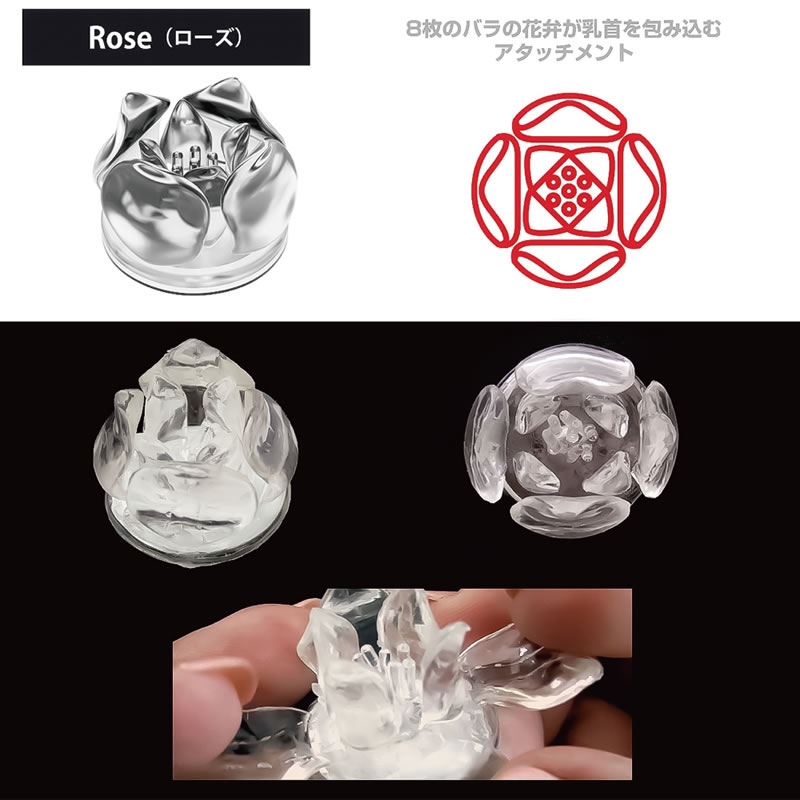 個性あふれる5種のアタッチメントを、両乳首に使えるよう、すべて2個ずつご用意。