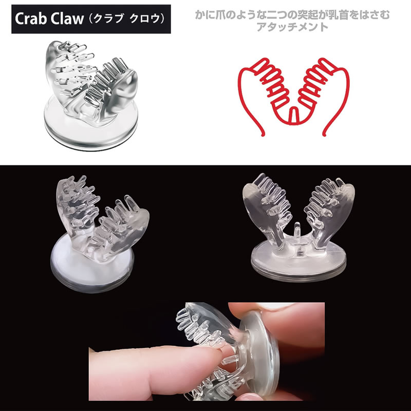 カニ爪のようなユニーク形状が、がっちり乳首を挟み込むアタッチメント。