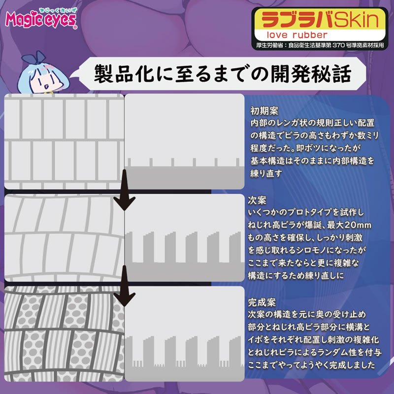 厚労省、食品衛生基準第370号準拠素材のラブラバSkinを採用しているので安心してご使用して頂けます。