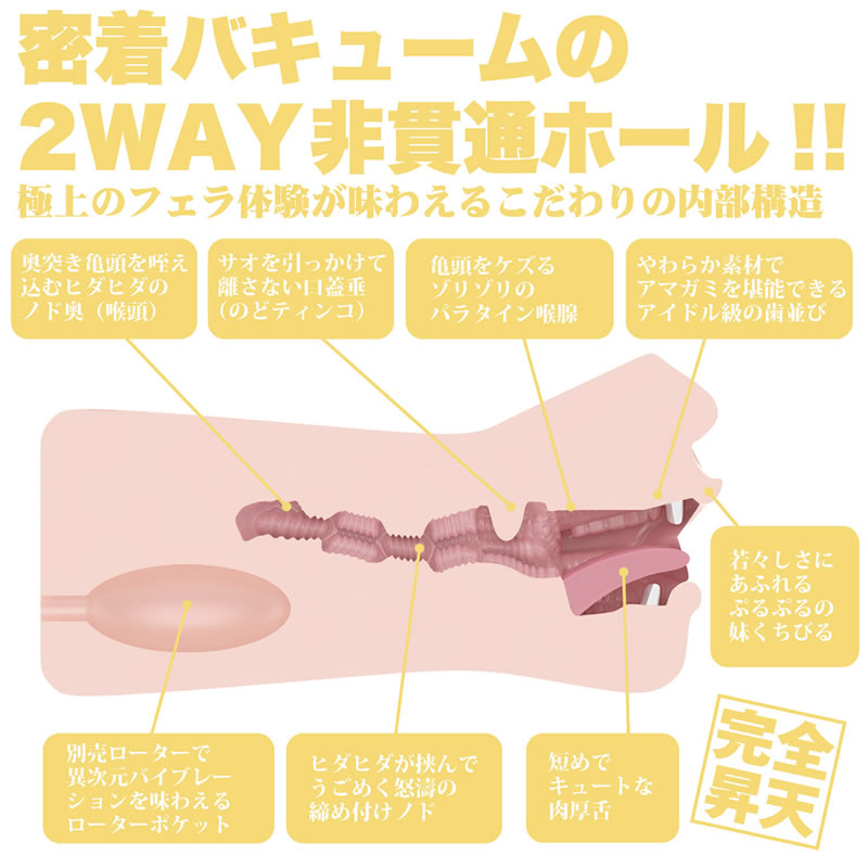 あえて電動パーツをなくすことで、リアルさはそのままに肉厚・非貫通の密着型バキュームホールを生み出しました。