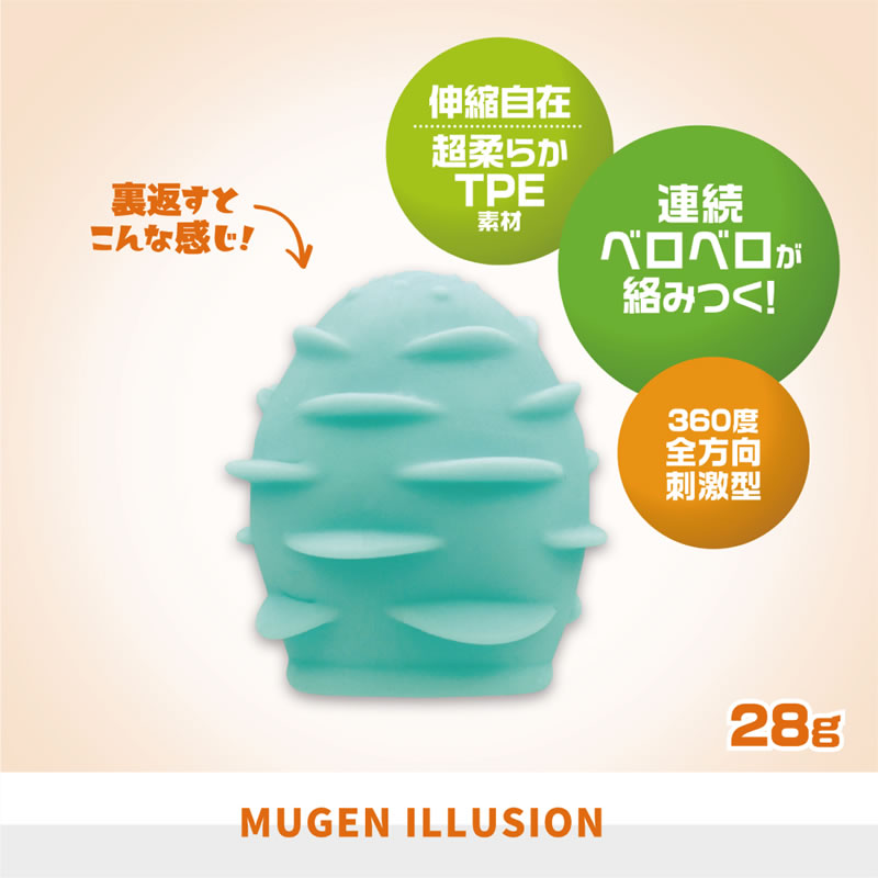 コンパクトサイズだけど連続ベロベロが絡みつく360度の全方向刺激と表面のヘキサゴンの刺激も楽しめる、裏返してリバーシブルな簡易グッズ。