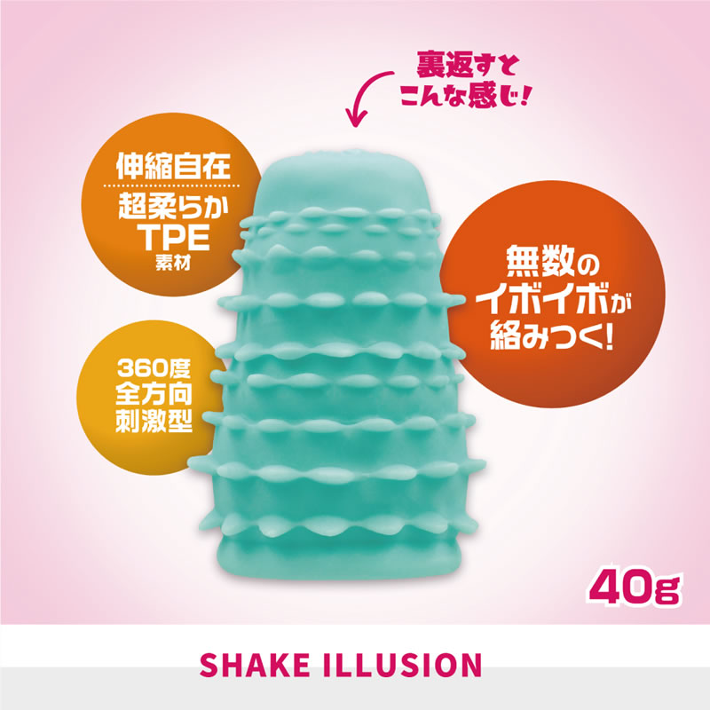 コンパクトサイズでありながら無数のイボイボの面で360度全方向刺激を味わうだけでなく、表面のヘキサゴンの刺激も裏返して楽しめるリバーシブルな簡易グッズ。