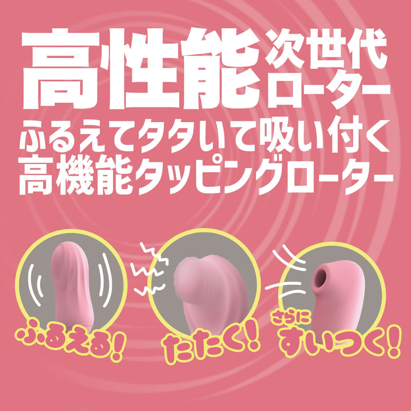 シリコン素材の柔らかなヘッドに「震える」だけでなく「タップする」機能と、ダブルにはさらに「吸いつく」機能も備えた超高性能ローターです。