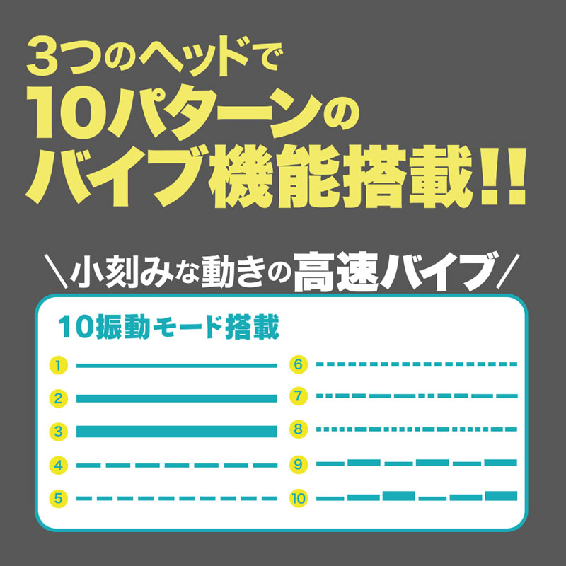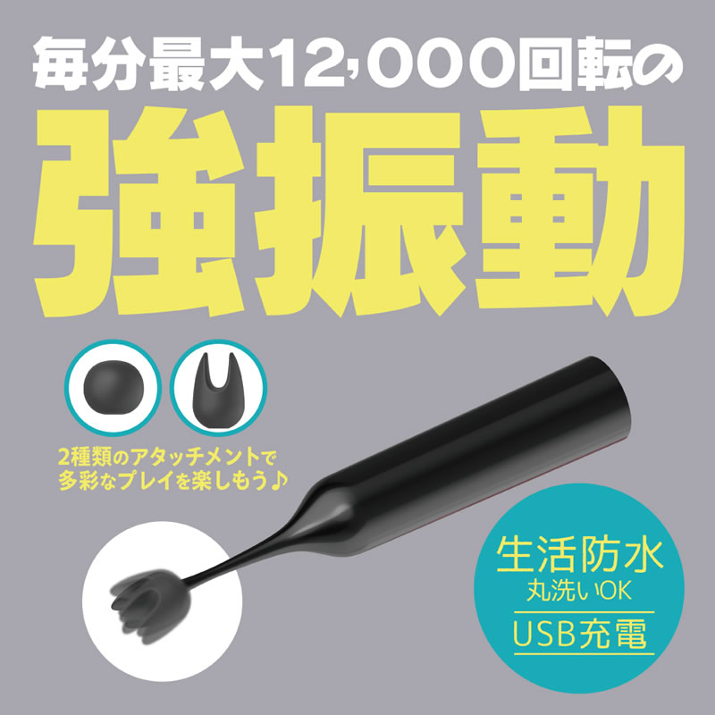 小さなヘッドに集中した毎分12000回転の強振動を2種のシリコンヘッドを使い分けてお好みの場所で楽しんでください。