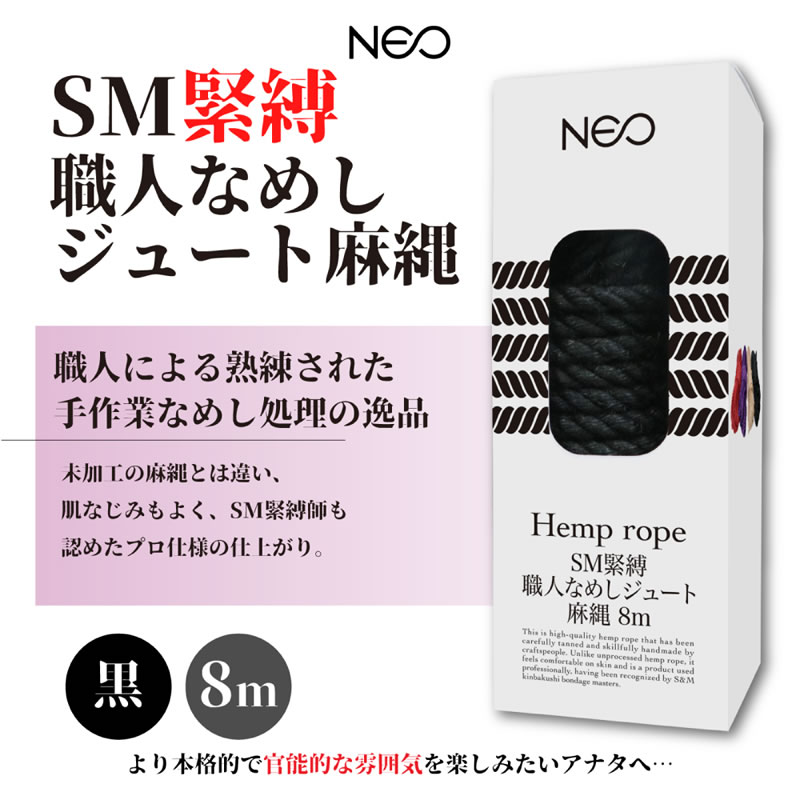 ★NEO SM緊縛 職人なめしジュート麻縄 黒 8m