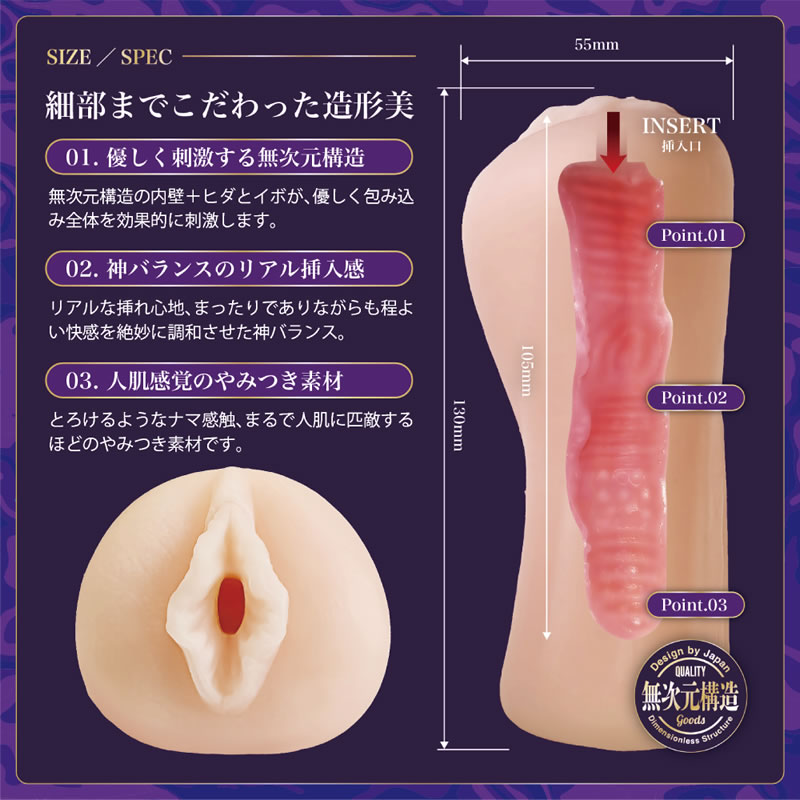 『淫猥』は横ヒダとイボの肉壁バランスが良いふわトロ素材との相性を考えたバランス構造。