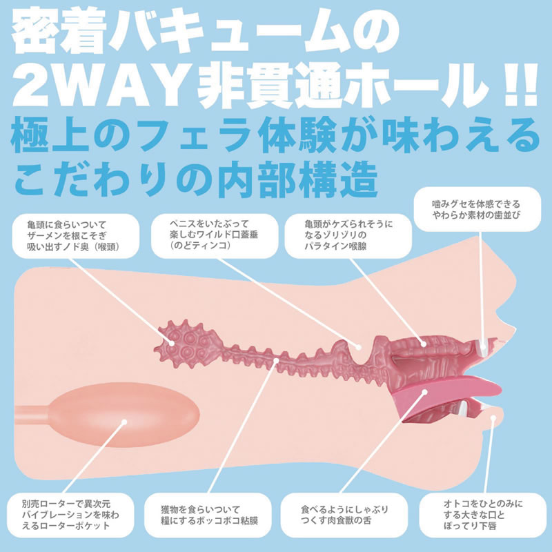 500gクラスの肉厚密着感と、人工粘膜による2層構造、そして趣向を凝らした口腔ギミックにより【石原希望】のむさぼるような貪欲フェラを体感できるのです。