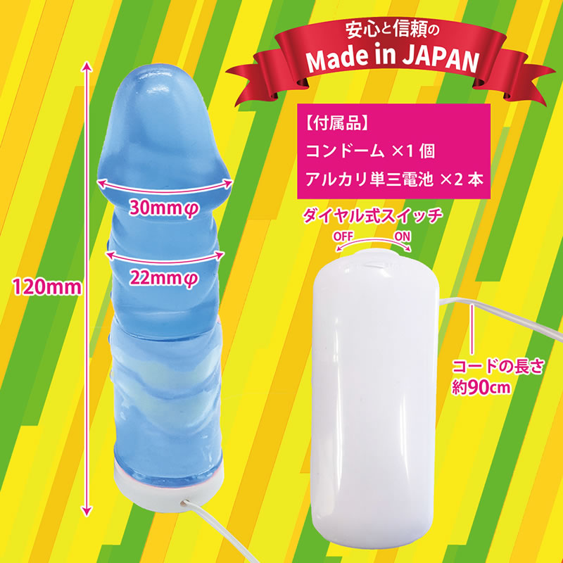 アルカリ電池&バイブカバー用のコンドーム同梱で即使用可能。