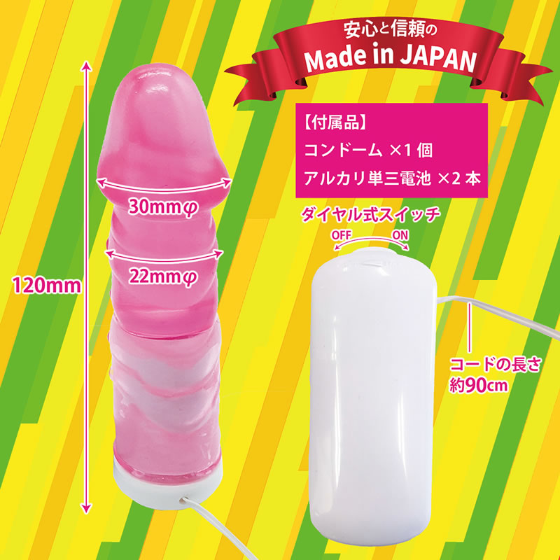 アルカリ電池&バイブカバー用のコンドーム同梱で即使用可能。
