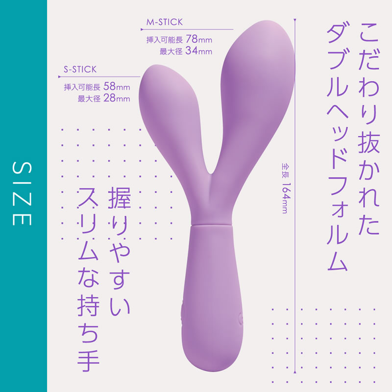 大小、サイズの異なる二つの挿入部が配置されたスティックバイブ!