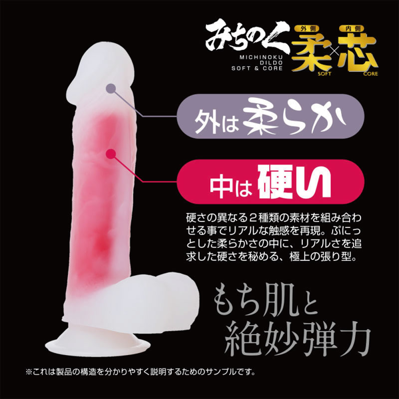 この『みちのくディルド柔×芯』の最大の特徴は「外は柔らかく、中は硬い」二重構造です。