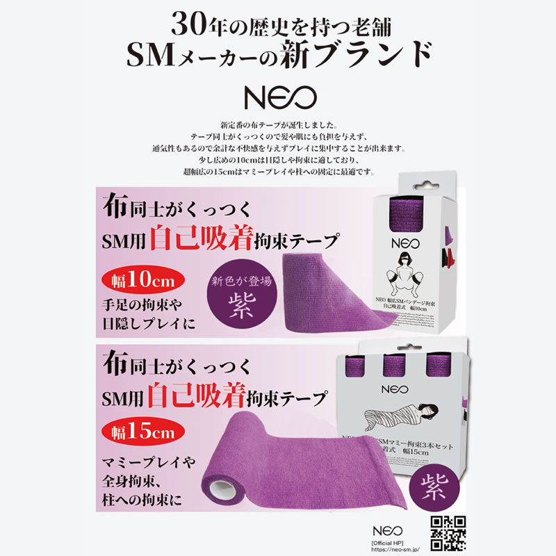 ★NEO 超幅広SMマミー拘束3本セット 自己吸着式 幅15cm 紫