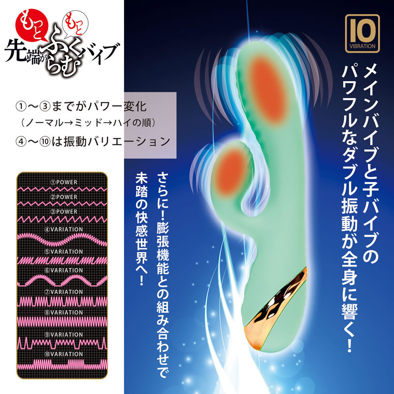 先端部はより大きくふくらみ、振動部は小バイブを追加したパワフル仕様となり、あなたを未踏の快感世界へと誘います!