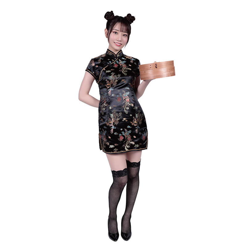 両サイドのスリットでセクシーさが溢れ出るミニスカチャイナ。