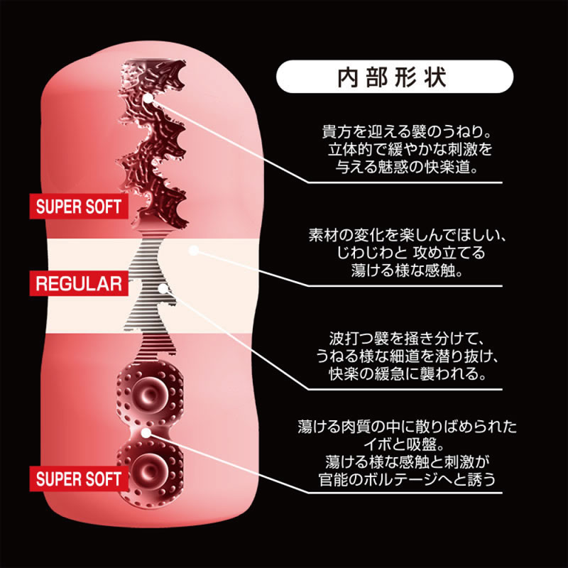 靡唇は硬度の異なる二つの素材を三層に配置し、蕩・柔・蕩の挿入感を実現しました。