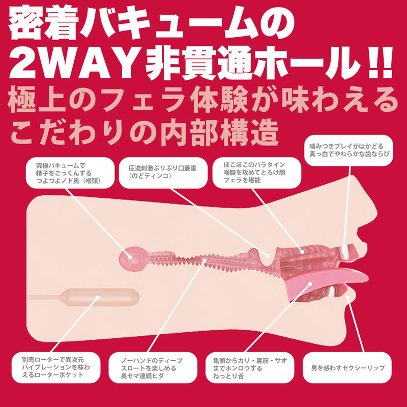 ●内部構造・男を惑わすセクシーリップ・噛みつきプレイがはかどる真っ白でやわらかな歯ならび・亀頭からカリ・裏筋・サオまでホンロウする、ねっとり舌