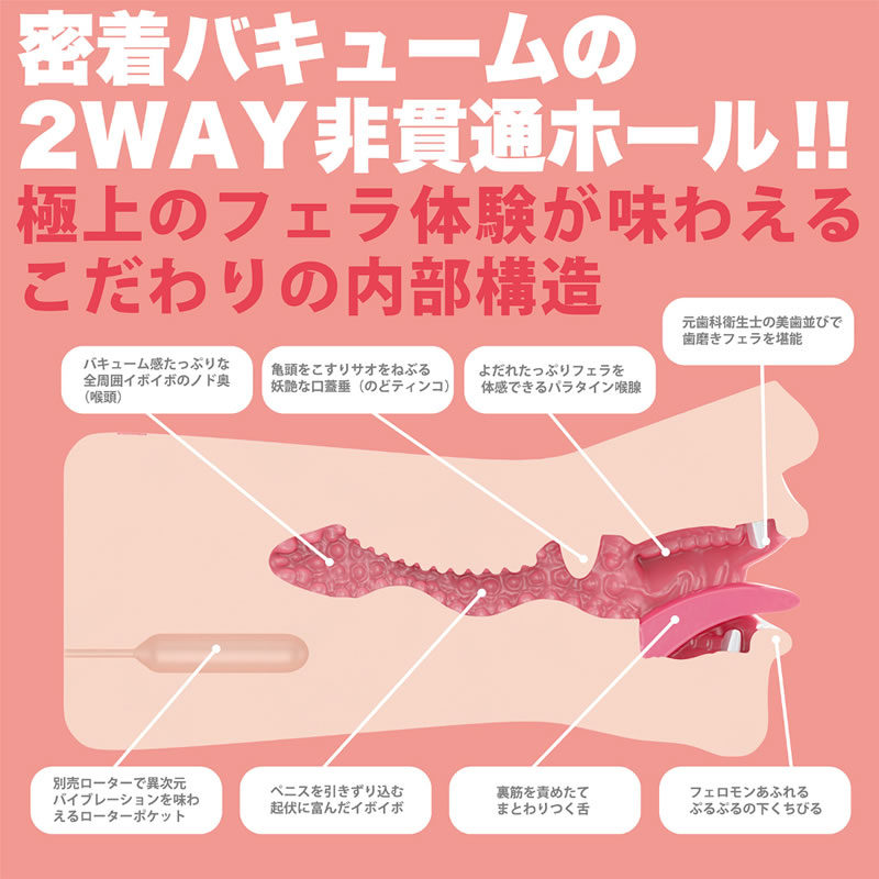 本人の完全監修によって、まとわりつくような神舌とぷるぷる下唇を完全再現しつつ、電動タイプでは実現できなかった緻密な内部構造も造形化に成功。