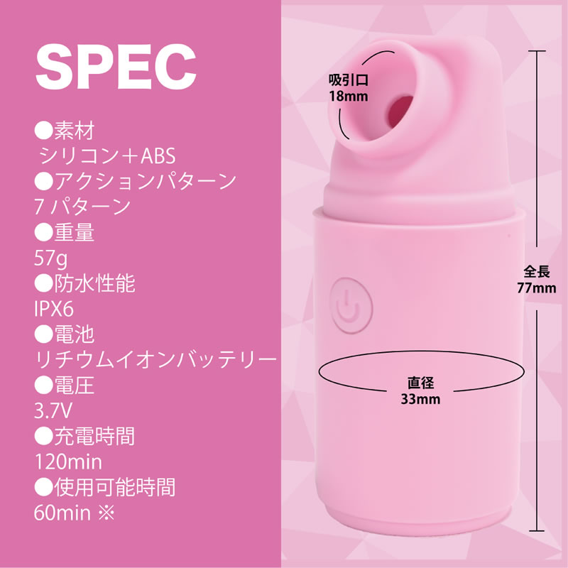 上質なモーター搭載の吸引機構に高品質シリコン素材の吸引口と持ちやすいサイズ、さらにはIPX6の高レベル防水性能だからしっかり洗えて衛生的です。