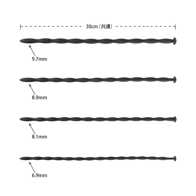 サイズ:長さ300mm×太さ9.7mm・8.9mm・8.1mm・6.9mm