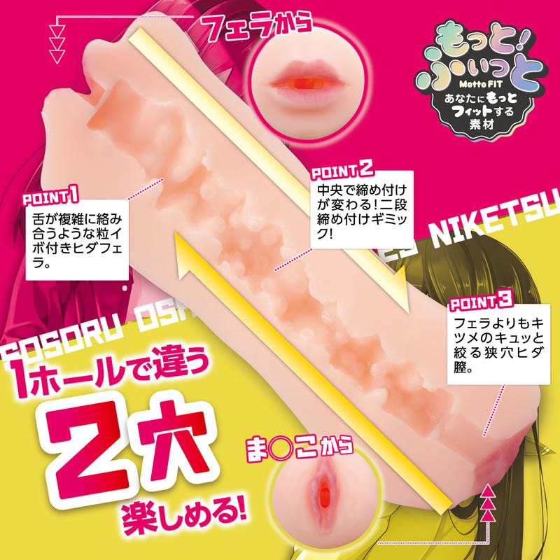 フェラ側の大ぶりな絡まるヒダと、マ○コ側のランダムに配置された粒イボが楽しめます。