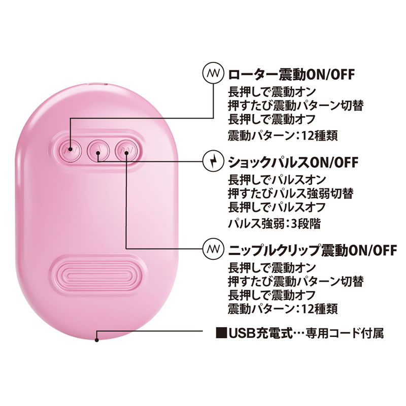 2つのクリップで敏感部分を挟むと3パターンのパルスを放出!