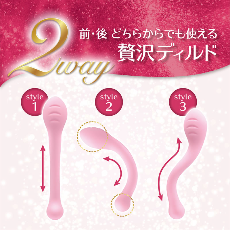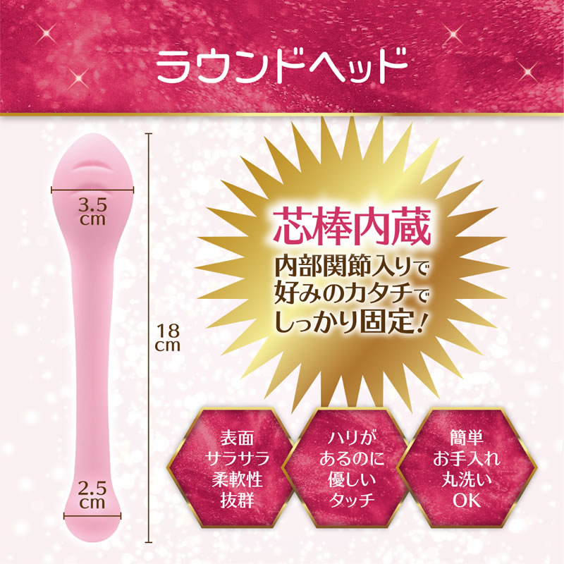 シリコンボディの本体は全長18cmで2.5cmと3.5cmの2つのヘッドのどちらからでも楽しめます。