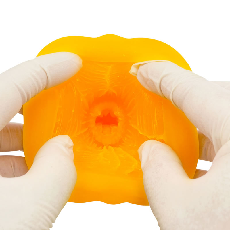 奥に進めば高刺激に締まる内部構造のため、床オナ式スタイルでは体重が掛かって程良くなりますが、ハンドホールでは、全体的に肉厚感が必要なため、少し大きめになっています。