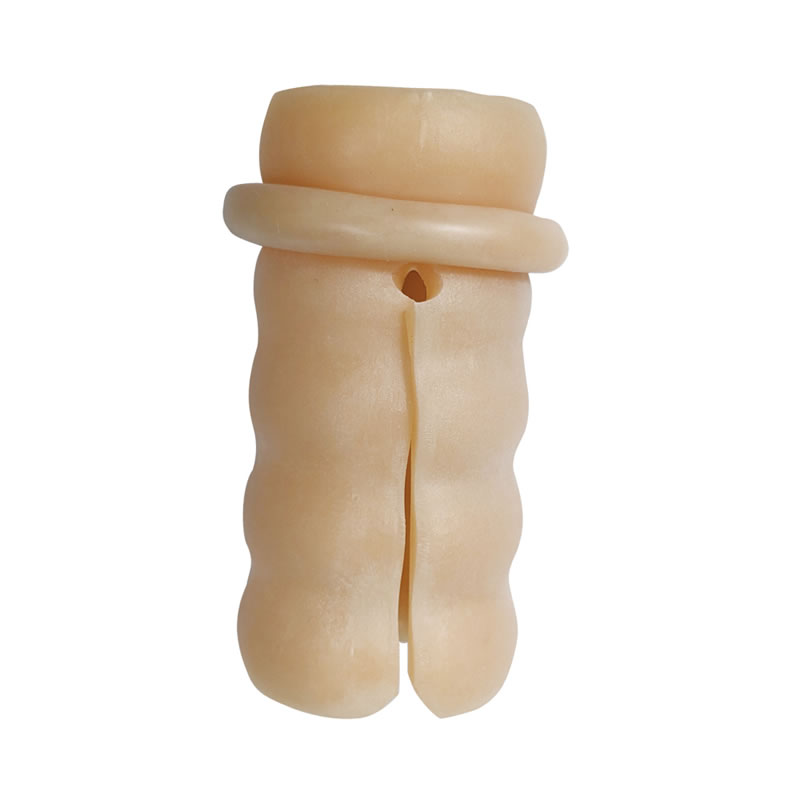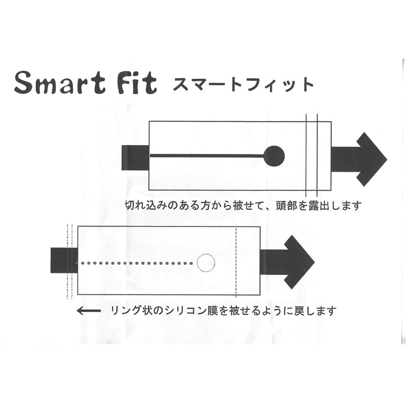 (1) 切れ込みのあるほうから被せて、頭部を露出します。