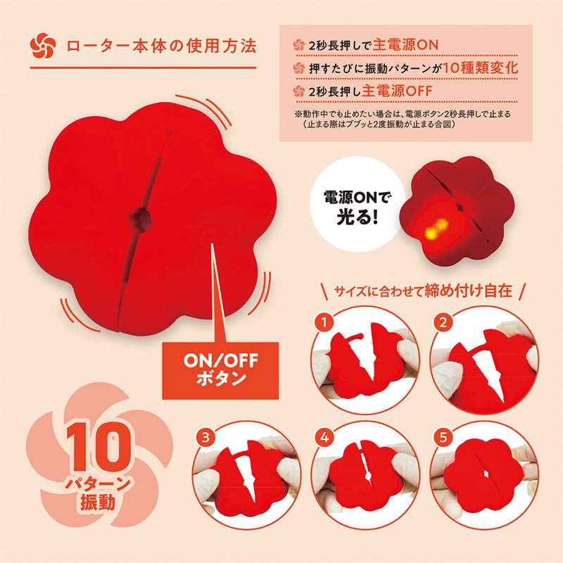 押すたびに変化する10パターン振動!ローター単独で使用可能!