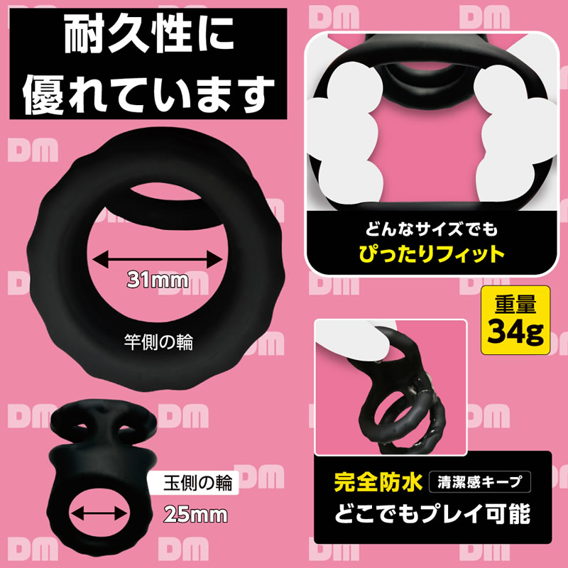 竿と玉を締め付けて、膨張感と持続力をアップするコックリングです。
