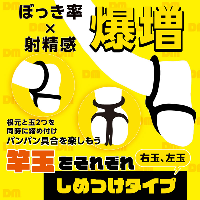 竿を根元から支え、玉を重点的に締め付けることで発射時の快感を向上させます。