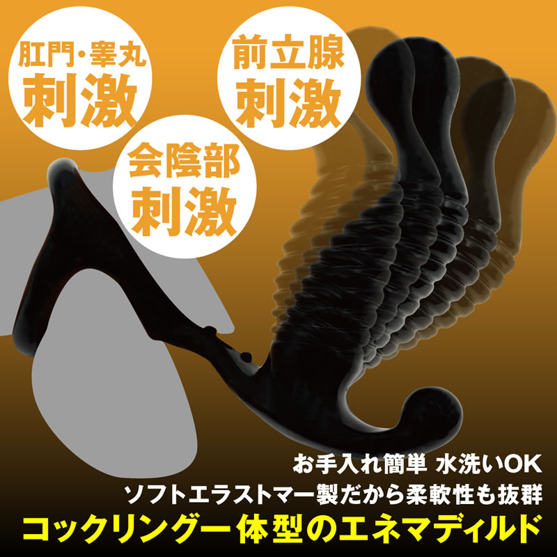 前立腺への刺激と、ペニス・睾丸の締め付けを両立させたコックリング一体型エネマディルド!