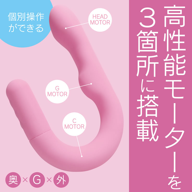 ヘッド・G部分・外責め用の3箇所にそれぞれ配置されたモーターをお好みに合わせて個別に操作出来ます。