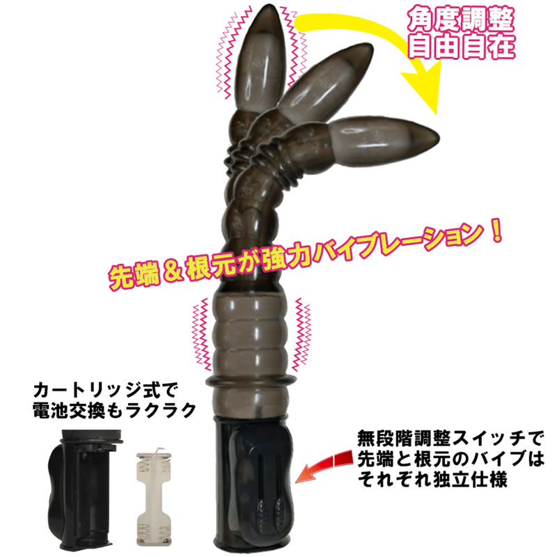 ヘッドに塔載した小型バイブと根本に塔載した強力バイブで、振動を絶やすことなく快感絶頂!