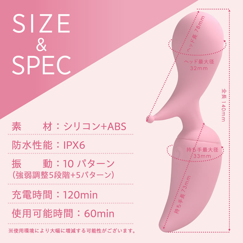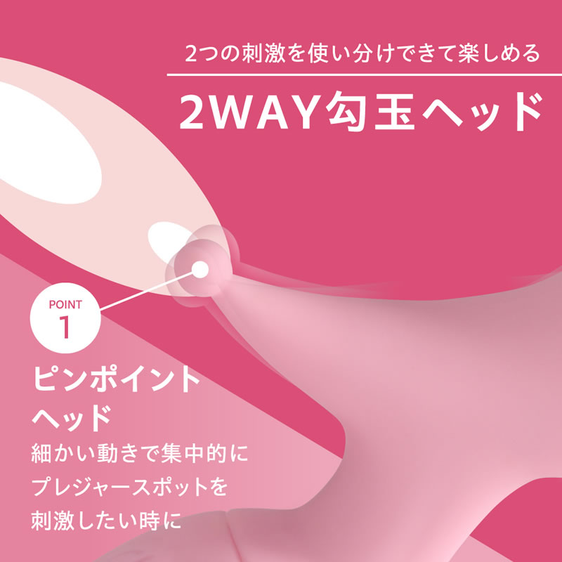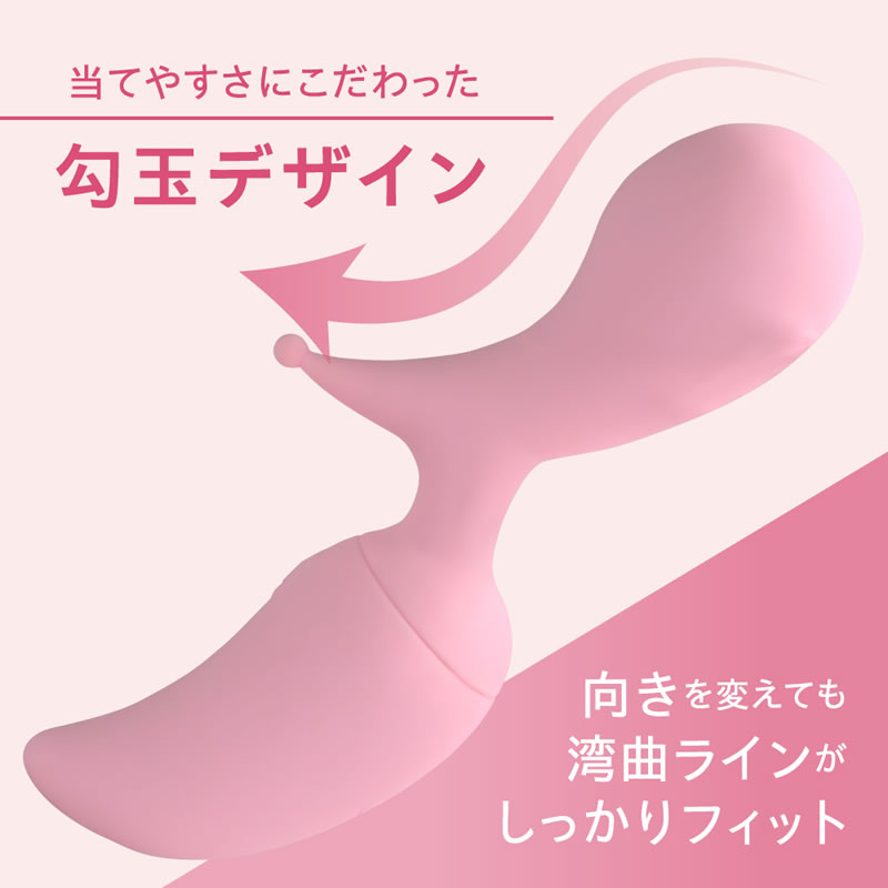 ピンポイント刺激とズンズン電マ刺激の両方を楽しめる勾玉型の可愛いデンマ!