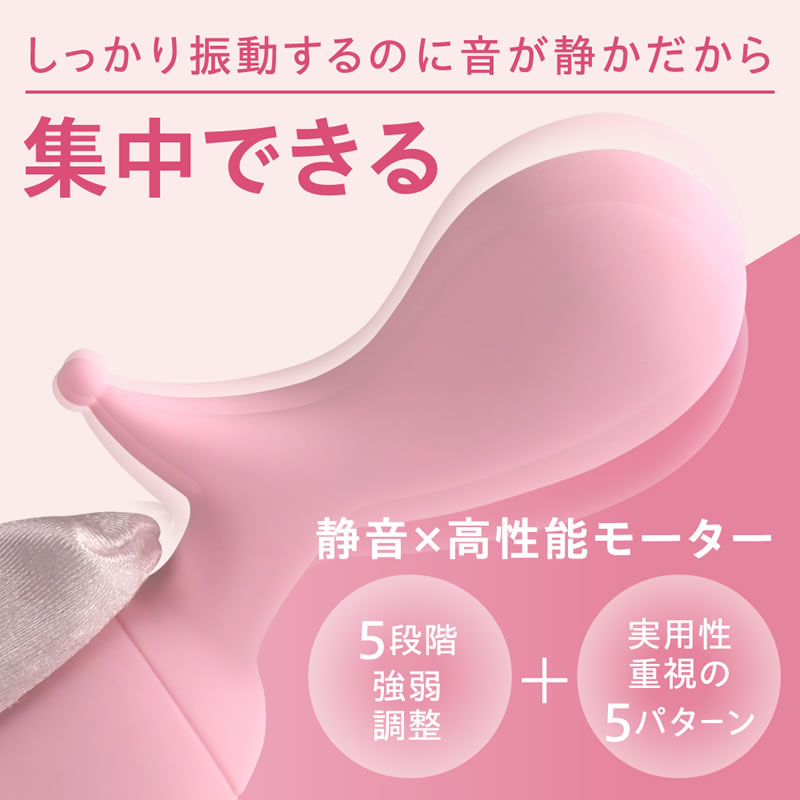 上質で静音×高速振動モーターを採用した振動パターンは強弱調整を細かく5段階+実用性の高い5つの振動パターンの計10パターンをお楽しみ頂けます。