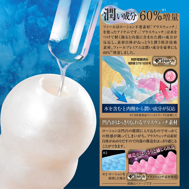 従来品であるフィールシリーズから潤い成分が60%増量したプレミアムホール!