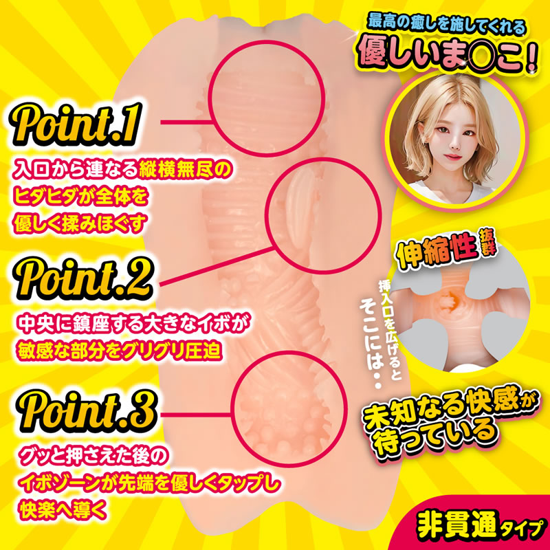 中間に鎮座する大きなイボが絶妙なアクセントを生み、長時間使ってもマンネリしない癒しの空間を作り出します。