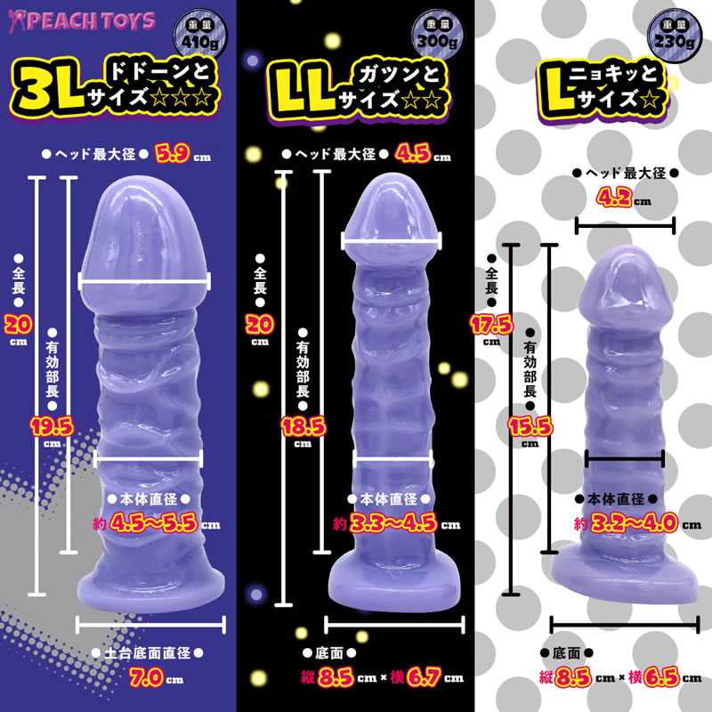 柔らかくて弾力感たっぷりの「ニョッキノコ(ソフトピンク)」が、ガツンとハードなパープルディルドに大変身!