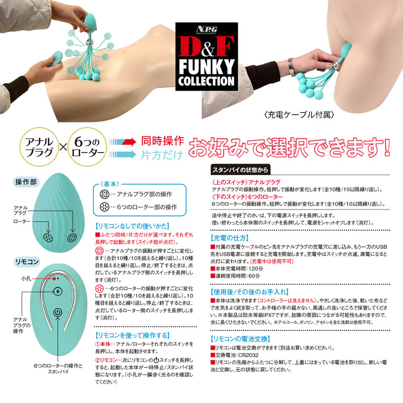 〈アナルプラグ〉10種の快感振動 〈6個の球型ローター〉10種の快感振動