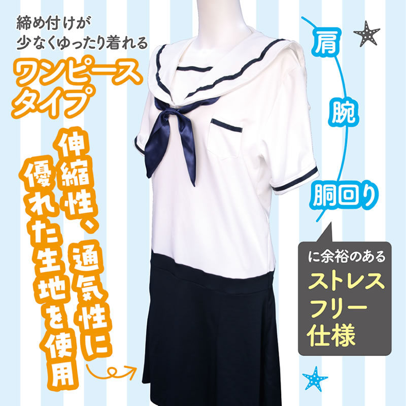 締め付けが少なくゆったり着れるワンピースタイプ。