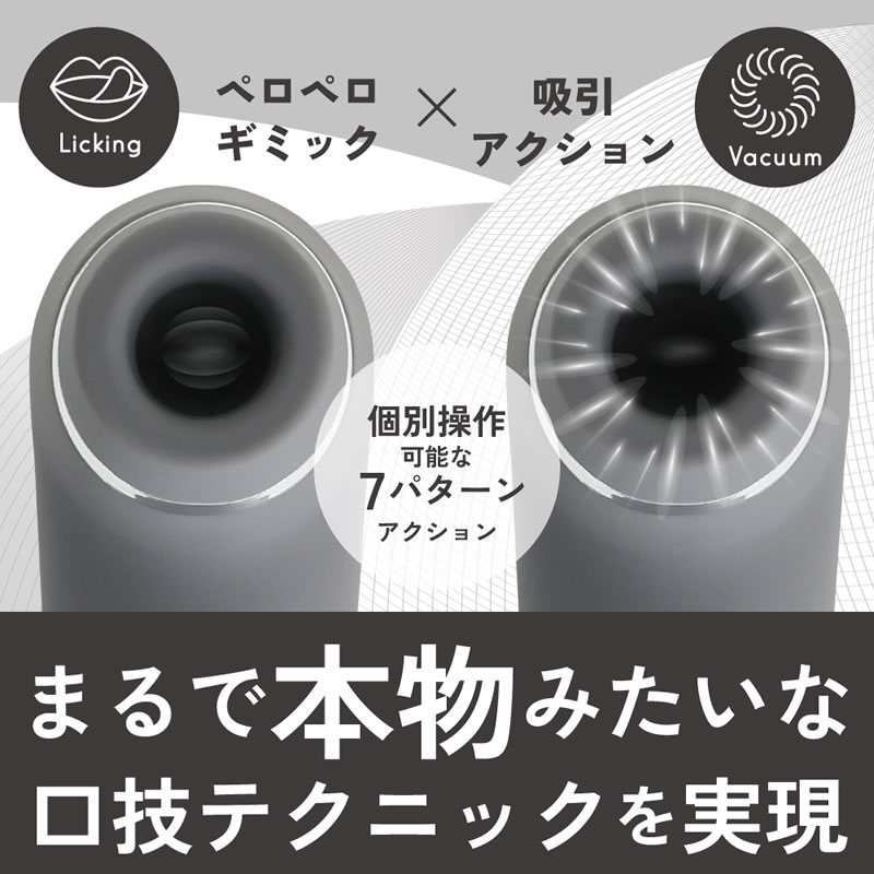肌触りの良い滑らかな高品質シリコン素材の吸引口と柔らかい舌パーツの舐めるギミックと高性能な静音モーターによる真空吸引アクションのW刺激でリアルなク◯ニ体験を再現しました。