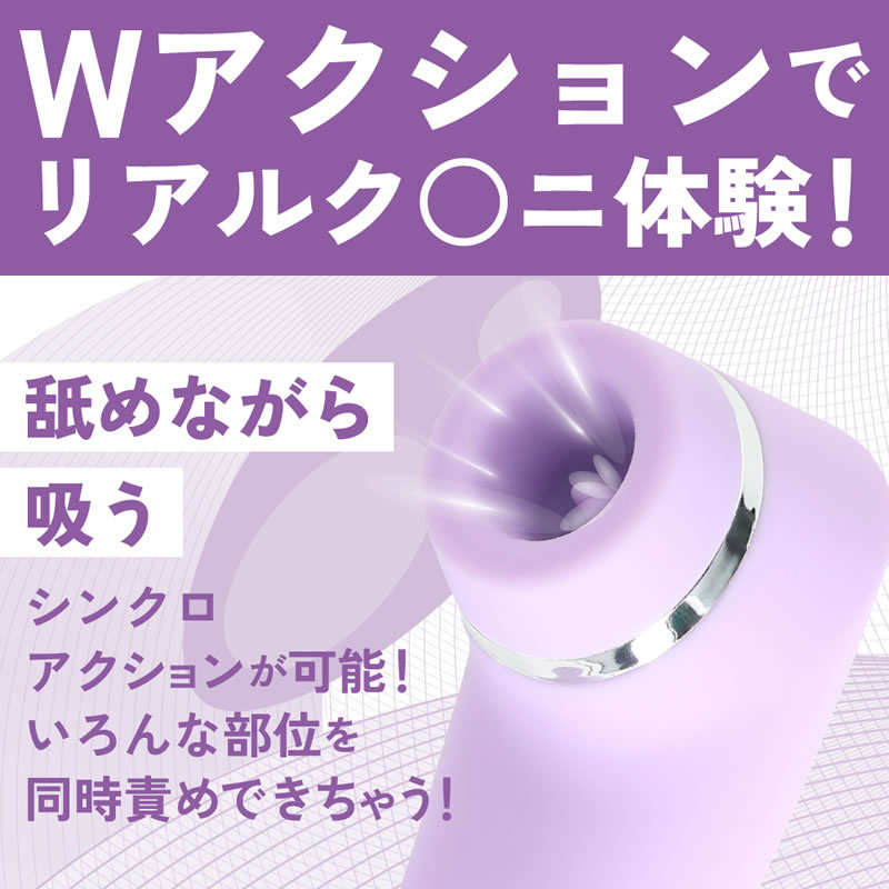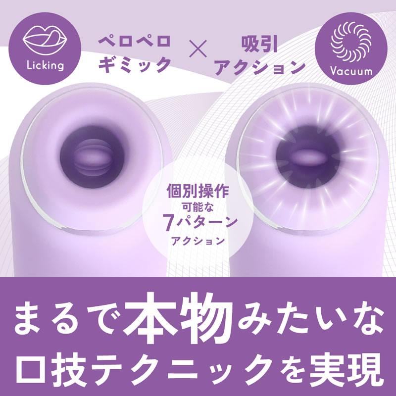 肌触りの良い滑らかな高品質シリコン素材の吸引口と柔らかい舌パーツの舐めるギミックと高性能な静音モーターによる真空吸引アクションのW刺激でリアルなク◯ニ体験を再現しました。